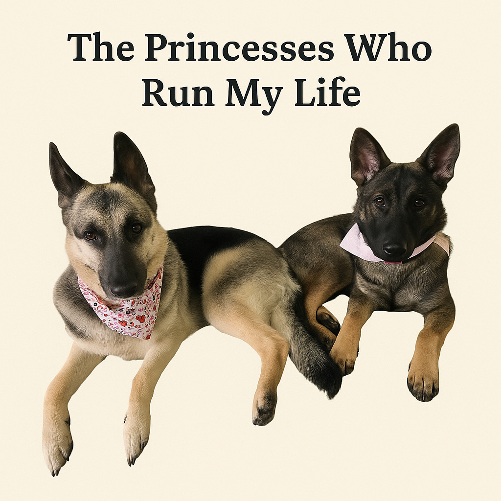 I work full-time in New York City and write everywhere life gives me a corner — on commuter ferries, in quiet kitchens before sunrise, and at night when the house settles and the dogs finally stop arguing with gravity. I live with my husband and our two German Shepherds: Ariel, the escape artist, and Diana, the lovable menace. My soul dog, Zee, shows up in my dreams and on the page with perfect timing.